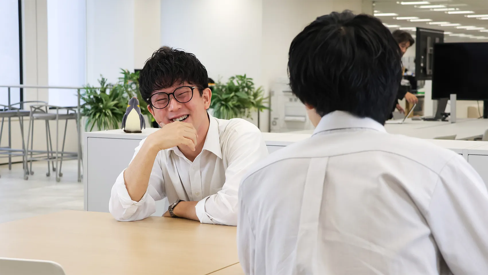 最初に仲良くなったきっかけは、社内で同期や先輩とランチしてたときにHirotoくんが合流してくれたこと。新人歓迎会とか、若手の食事会でも話す機会が増えて、ゲームっていう共通の趣味で一気に距離が縮まったんだよね。そこからは社内外問わず、よく交流するようになりました。